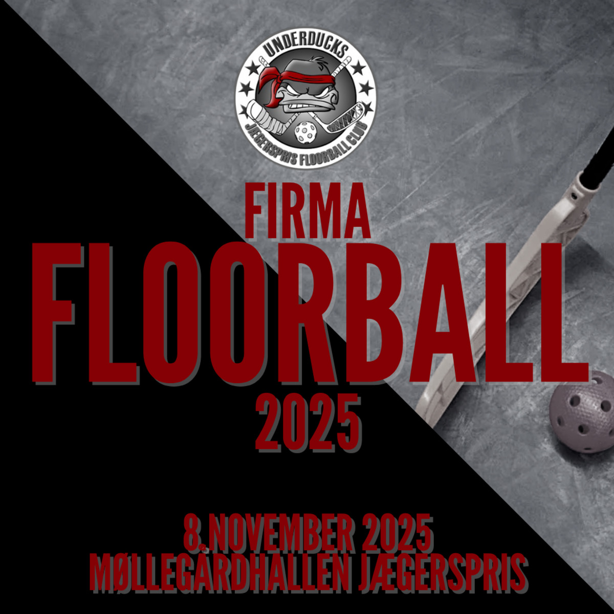 Meld dit hold til Jægerspris Underducks Firma Floorball motionsstævne, lørdag d. 8/11 fra 10.00 i Møllegårdhallen i Jægerspris. Der er begrænset plads til hold, så tilmelding sker efter først til mølle princippet.
